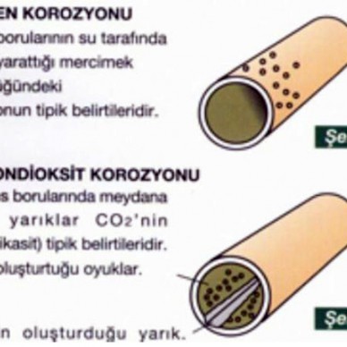 - Buhar kazanı beslenme suyu içinde çözülmüş olarak bulunan serbest Oksijen (02) ve Karbondioksit (CO2) gazları kazanın ve buhar tesisatının metal yüzeylerinde tahribata sebep olurlar.